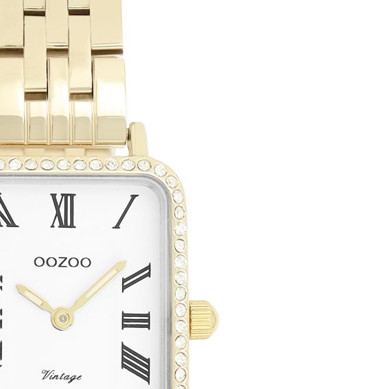 Model C20414 uit de OOZOO Vintage-collectie combineert finesse en elegantie in een subtiel vrouwelijk design. De rechthoekige gouden kast (24 x 28 mm) omlijst een strakke witte wijzerplaat en brengt lichtheid en verfijning aan je pols.