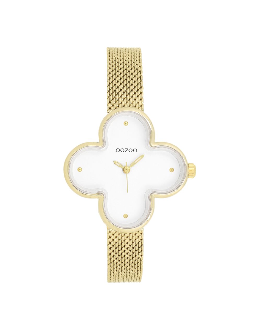 Toon stralende elegantie met het OOZOO Timepieces C11527 dameshorloge , een delicate creatie met een klavermotief (32 x 32 mm) , perfect om uw look te verbeteren met een vleugje verfijning. De gouden mesh-band en de goudkleurige metalen kast creëren een chique en tijdloos silhouet.