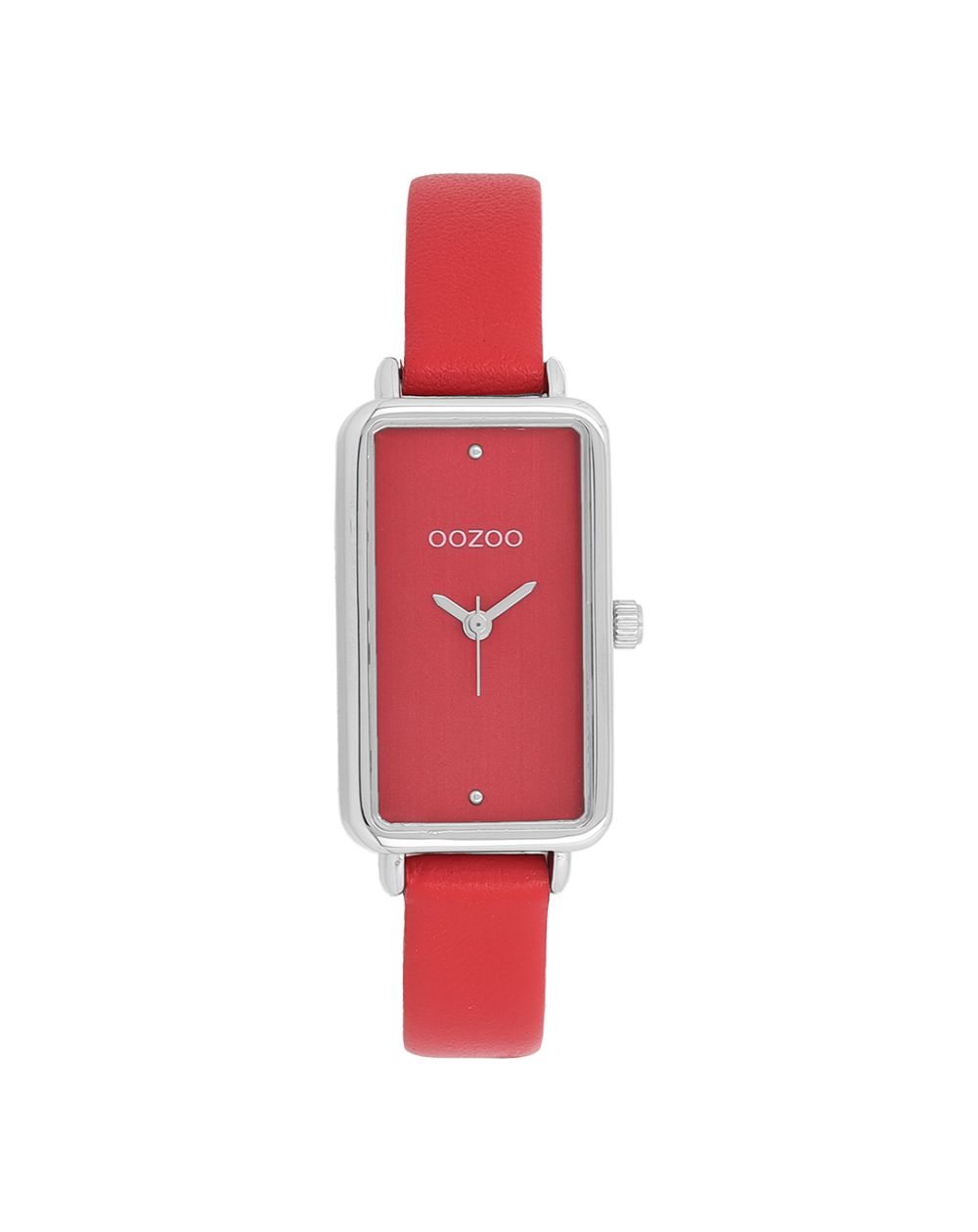 OOZOO Timepieces C11532 – Rood & zilver rechthoekig dameshorloge, intensiteit en elegantie op de pols