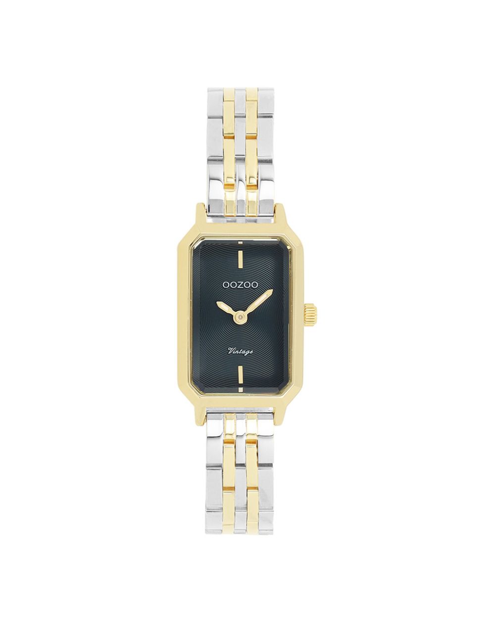 Klassieke stijl blijft de kern van deze trendy collectie en het rechthoekige dameshorloge OOZOO C20426 is ongetwijfeld de must-have van dit seizoen. Met zijn 22 x 19 mm goudkleurige metalen kast en zwarte sunburst wijzerplaat combineert het vintage elegantie met moderne flair.