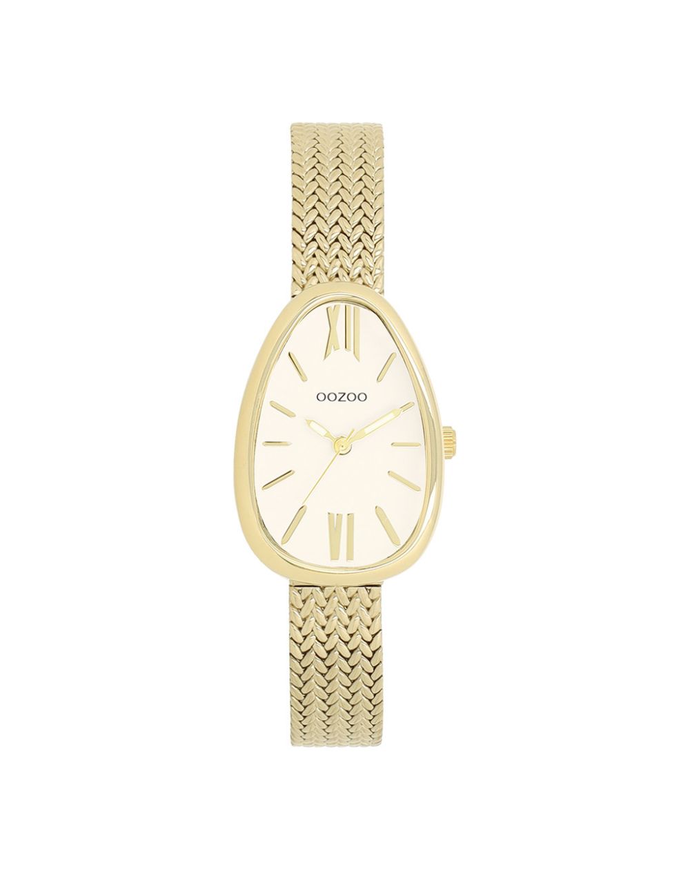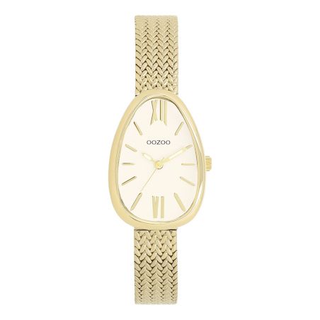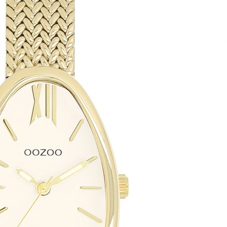 Voeg een vleugje elegantie toe aan je outfits met het ovale dameshorloge OOZOO C11642 , een verfijnd model uit de trendy OOZOO Timepieces-collectie. De goudkleurige metalen kast van 31 x 22 mm past perfect bij de elegante champagnekleurige wijzerplaat, versierd met goudkleurige strepen en Romeinse cijfers, en bijpassende wijzers.