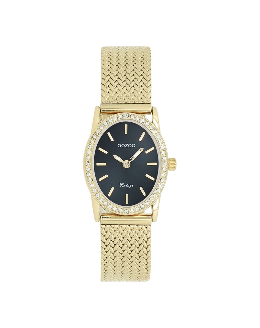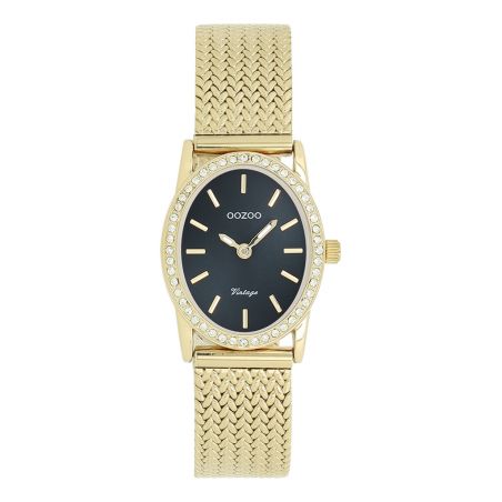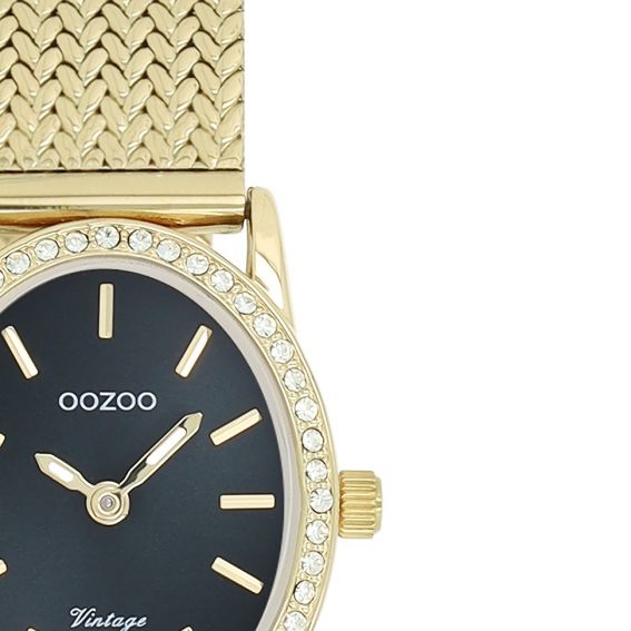 Klassieke stijl blijft de kern van deze trendy collectie en het ovale dameshorloge OOZOO C20434 is dé must-have van dit seizoen. De 28 x 23 mm goudkleurige metalen kast, versierd met kristallen, heeft een donkergroene wijzerplaat met zonnestraleneffect, versierd met goudkleurige gestreepte indexen en bijpassende wijzers.