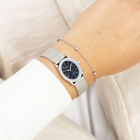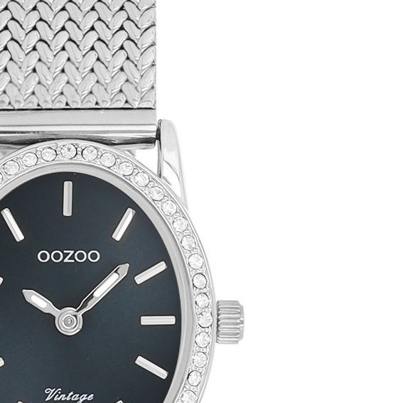 Klassieke stijl blijft een vaste favoriet in deze trendy collectie, en het ovale dameshorloge OOZOO C20431 is dé must-have van dit seizoen. Met zijn zilverkleurige metalen kast van 28 x 23 mm, versierd met kristallen, en een donkerblauwe sunburst wijzerplaat combineert het vintage elegantie met moderne flair.