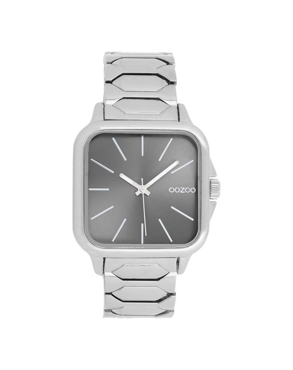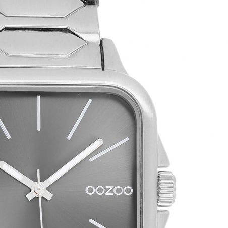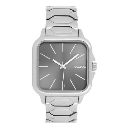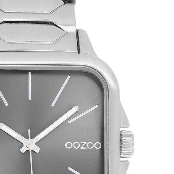 Maak een statement met het OOZOO C11602 unisex vierkante horloge, een trendy creatie uit de OOZOO Timepieces-collectie. Dit moderne model heeft een grote zilverkleurige metalen kast van 44 mm en een grijze sunray wijzerplaat, versierd met zilverkleurige gestreepte indexen en bijpassende wijzers.