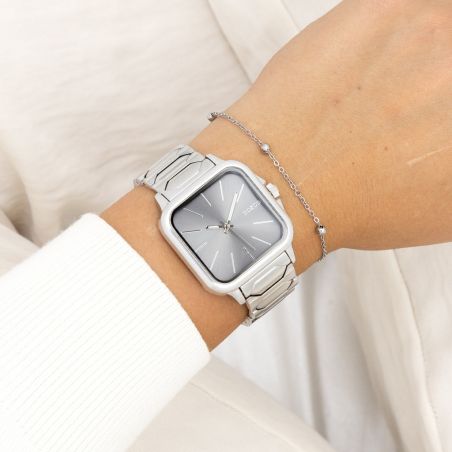 De zilveren roestvrijstalen band biedt extra comfort en robuustheid, waardoor dit horloge een chique en veelzijdige accessoire is, ideaal voor zowel mannen als vrouwen.