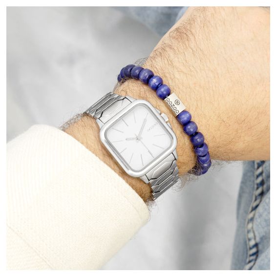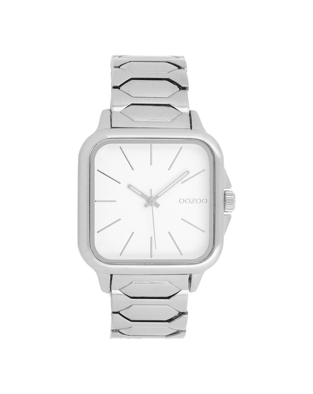 Maak een statement met het OOZOO C11600 unisex vierkante horloge uit de trendy OOZOO Timepieces-collectie. Dit moderne model heeft een 44 mm zilverkleurige metalen kast en een verfijnde witte wijzerplaat met zilverkleurige gestreepte indexen en bijpassende wijzers.