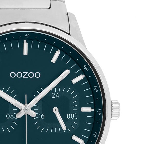 Maak een stijlvolle statement met het ronde herenhorloge OOZOO C11621 , een elegant exemplaar uit de trendy OOZOO Timepieces-collectie. Het horloge heeft een 42 mm zilverkleurige metalen kast en een donkergroene chronograafwijzerplaat met zilverkleurige en witte indexen en bijpassende wijzers.