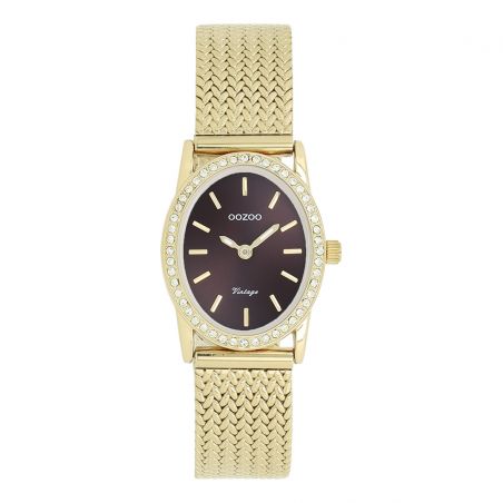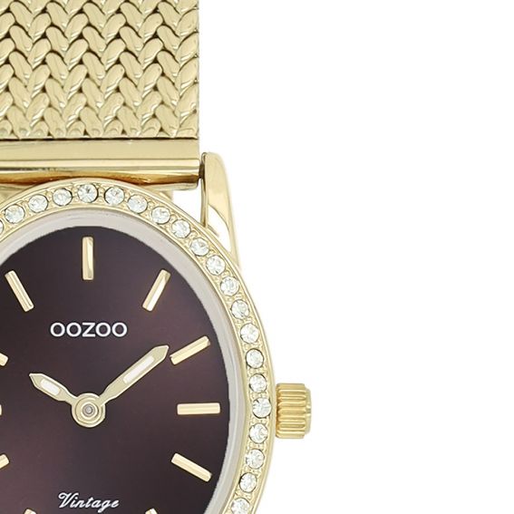 Klassieke stijl blijft de kern van deze trendy collectie en het ovale dameshorloge OOZOO C20433 is een must-have dit seizoen. Met zijn 28 x 23 mm goudkleurige metalen kast, versierd met kristallen, en een vijgrode sunburst wijzerplaat, combineert het vintage elegantie met moderniteit.