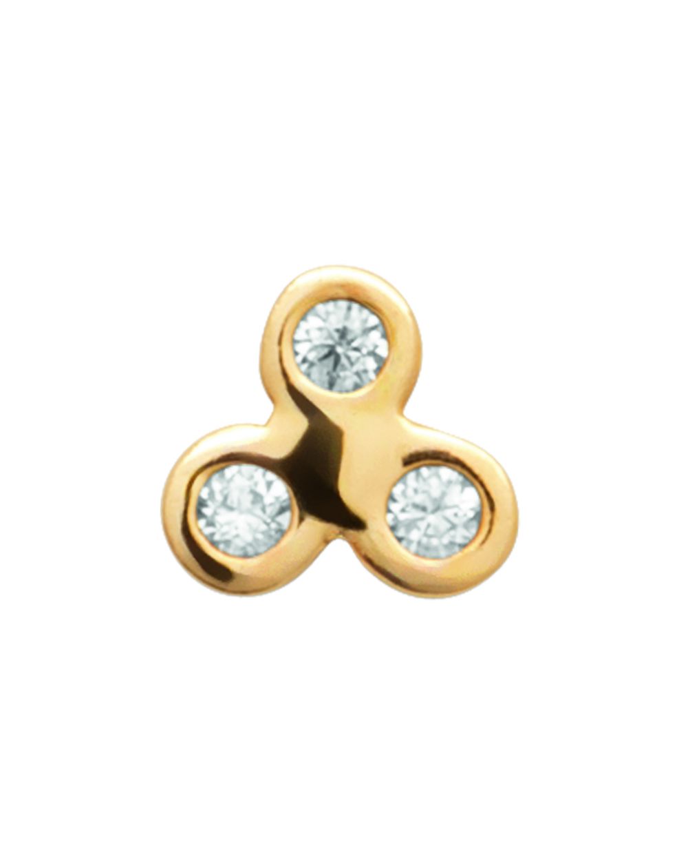 Piercing "Tria" – Trio van kristallen en vergulding op titanium staaf