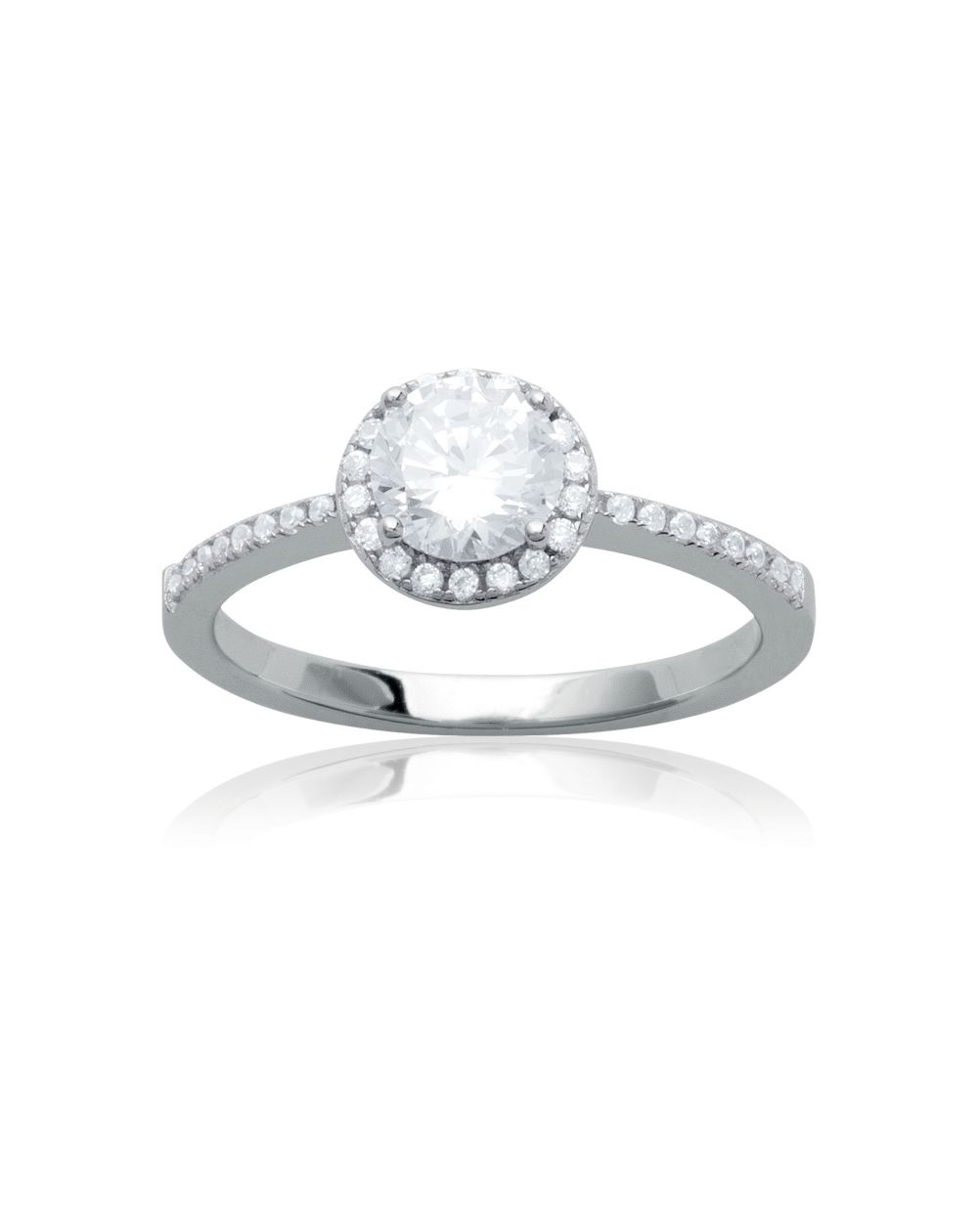 Solitaire gerhodineerde zilveren ring 8 mm microset
