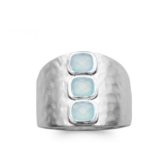 Blauwe agaat rhodium 925 zilveren ring