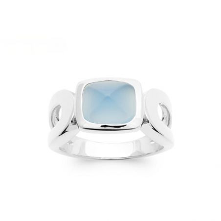 Blauwe agaat rhodium 925 zilveren ring