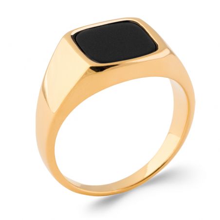 Hij is versierd met een halfedelsteenimitatie-onyx voor een subtiele kleuraccent. Deze zegelring is geschikt voor alle vrouwen die op zoek zijn naar een verfijnd en tijdloos sieraad.