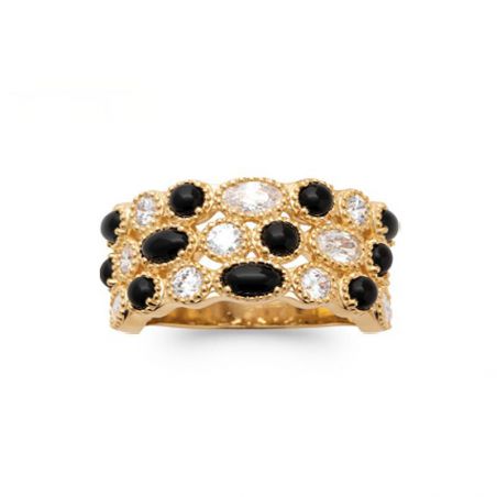 Ring geplaveid met zwarte stenen en 18k verguld kristal