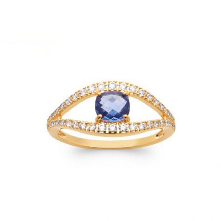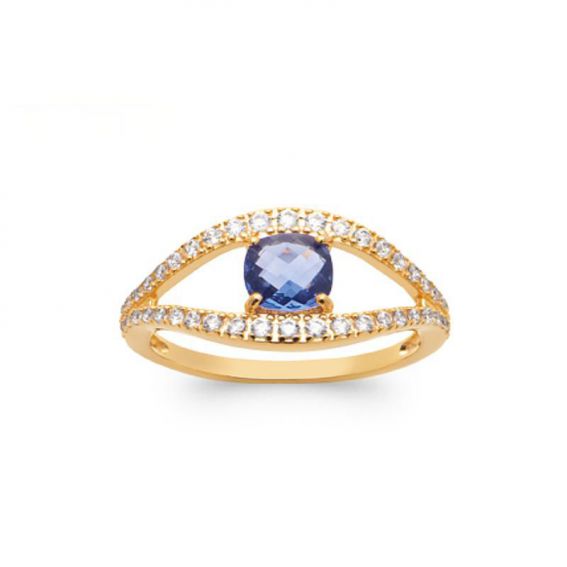 Deze hoogwaardige 18k vergulde ring is een ring met een blauwe steen en bezet met zirkoniumoxide stenen. De breedte van deze ring is 9 mm.