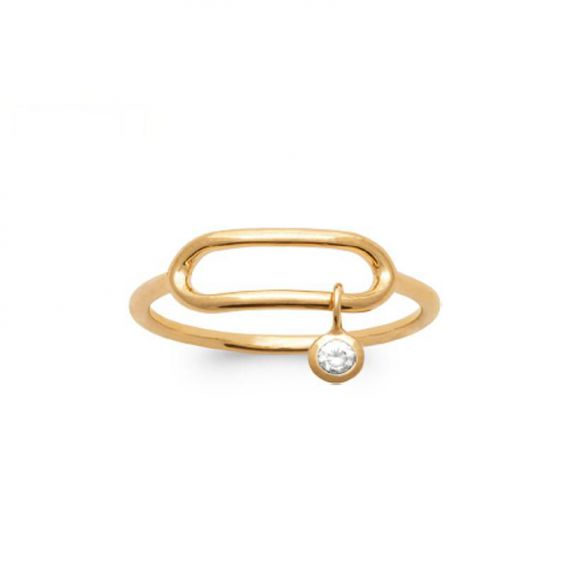 18k vergulde ovale ring met gesloten zirkonium bedel