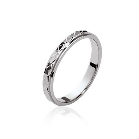 Dankzij de rhodiumafwerking behoudt deze ring zijn glans en is hij beschermd tegen aanslag. Bovendien kan het aan de binnenkant worden gegraveerd , wat extra personalisatie biedt om een speciale gelegenheid te markeren. Dit model is ideaal voor een stel dat op zoek is naar een trouwring die zowel klassiek als uniek is.