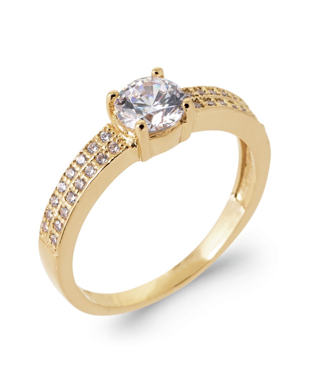 18-karaats vergulde solitaire ring – Eternity solitaire met schitterende kubische zirkonia