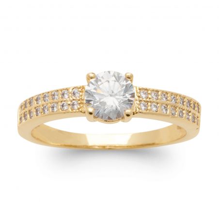 De 18-karaats vergulding zorgt voor een stralende en duurzame afwerking, terwijl de centrale zirkoon het licht intens weerkaatst voor een schittering die vergelijkbaar is met die van een diamant. De dubbele pavézetting versterkt de sprankeling en voegt een extra vleugje glamour toe, ideaal voor een symbolisch cadeau of een verfijnde outfit.