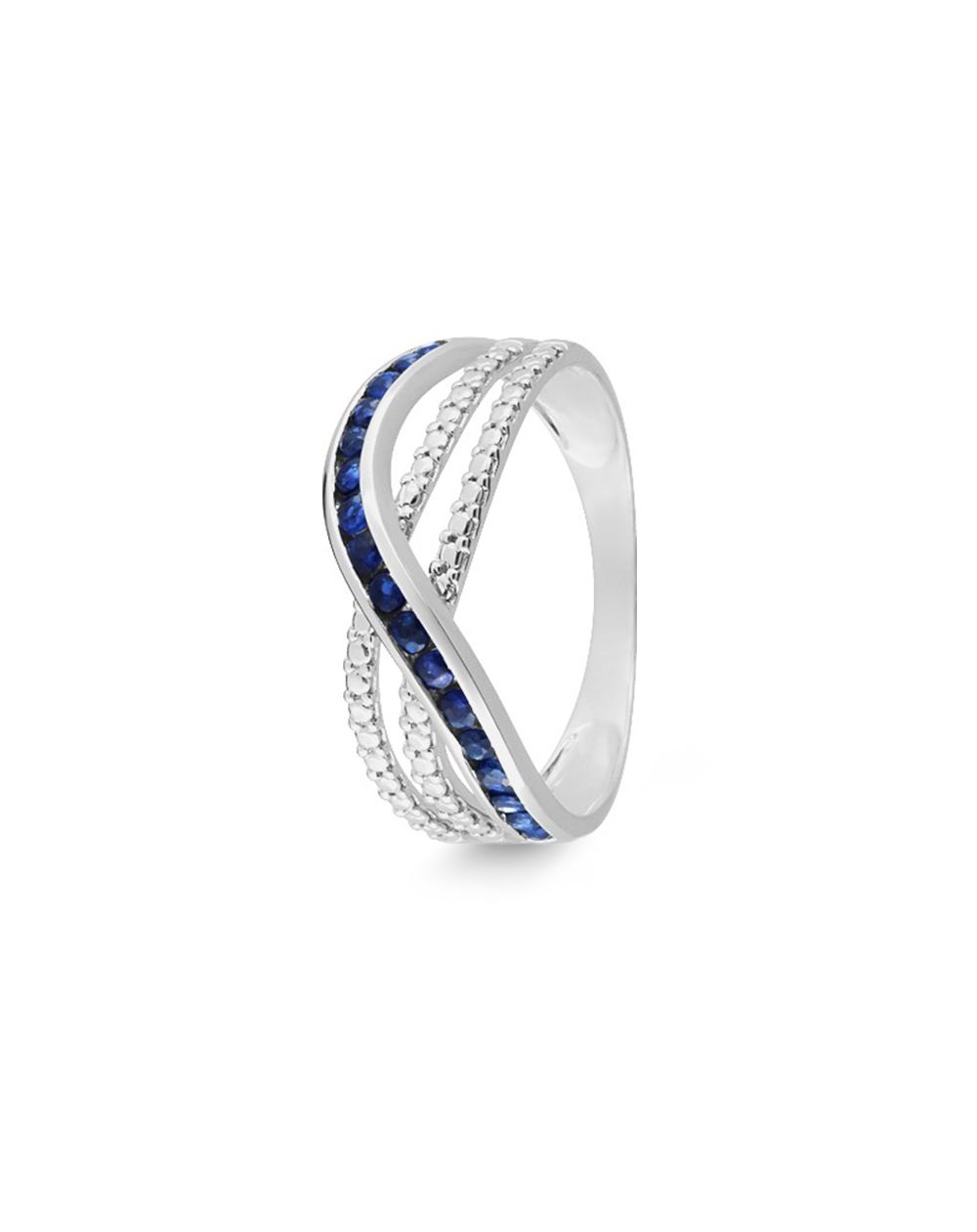 Deze witgoudenring van 9 karaat is een ring met saffieren. Dit kan van binnen worden gegraveerd.