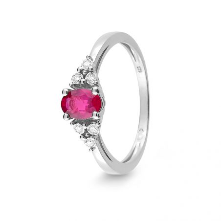 Deze witgoudenring van 9 karaat is een ring met een grote robijn en diamanten 0,05 karaat GH P2/P3. Dit kan van binnen worden gegraveerd.