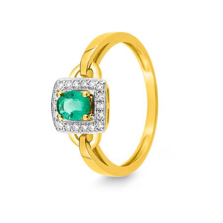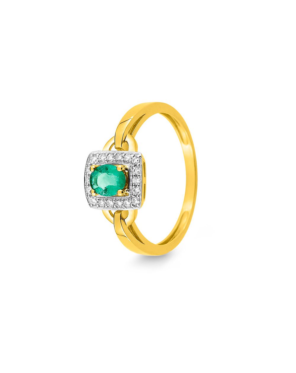 Emerald Rechthoekring en 9 karaat gele gouden stenen