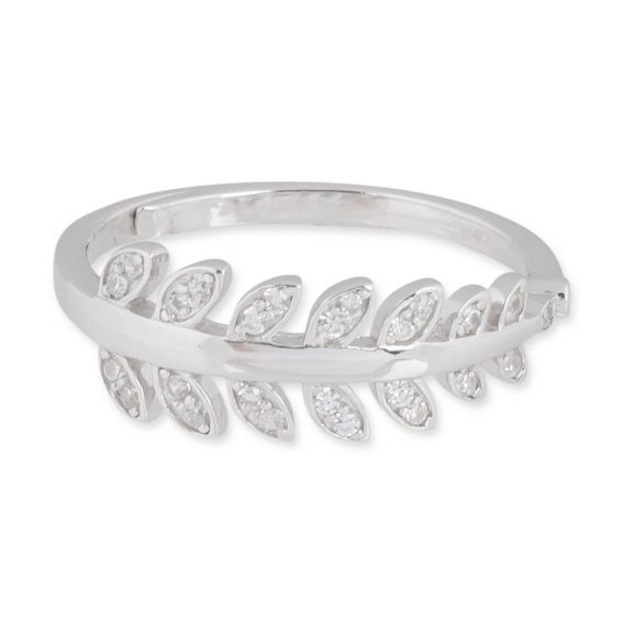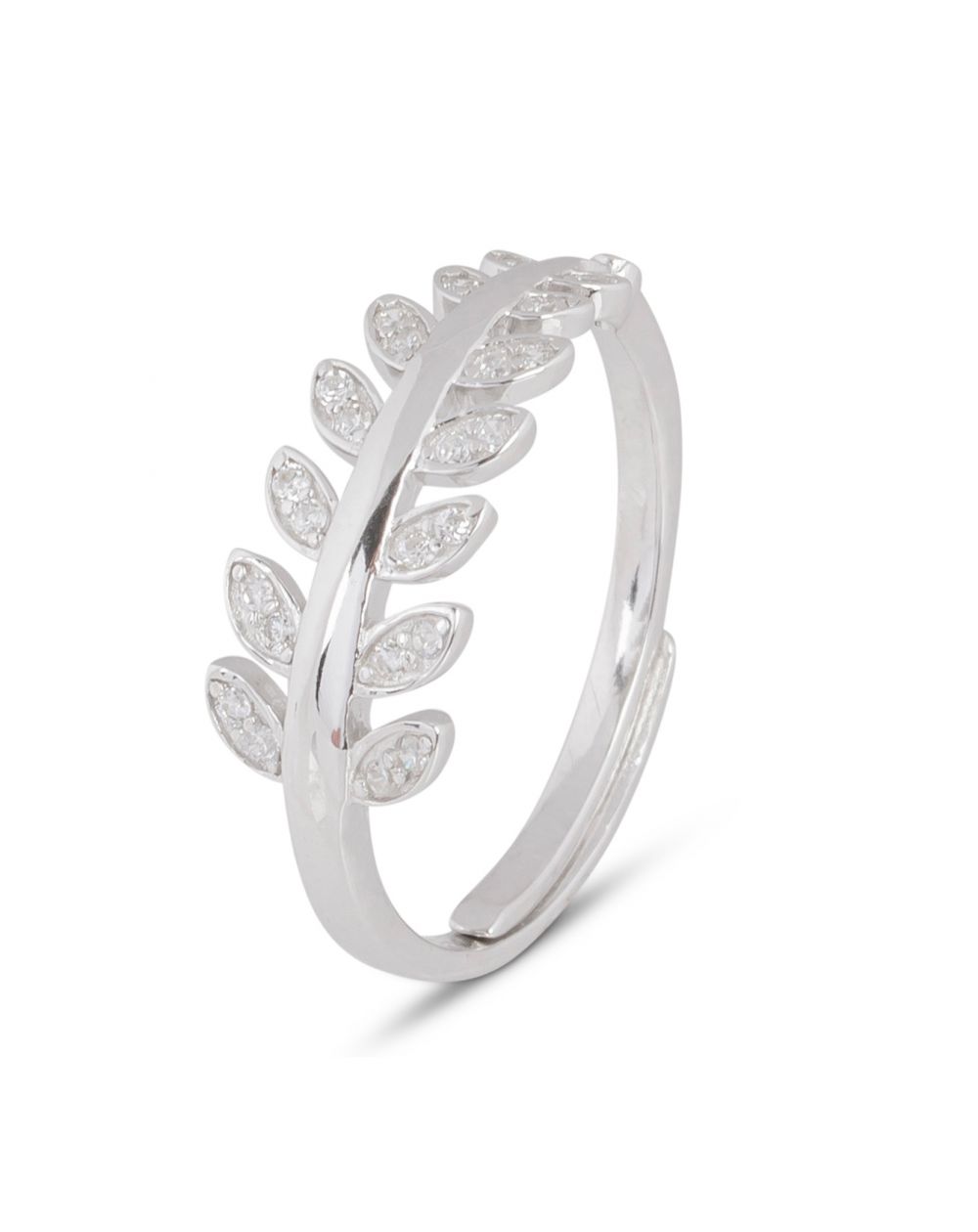 Deze 925 zilveren ring is een takvormige ring met blaadjes bezet met zirkoniumoxide stenen.