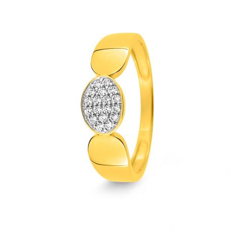Deze 9 karaat geelgouden ring is een ring met een edelsteenschijf van zirkoniumoxide stenen. Deze kan aan de binnenkant gegraveerd worden.