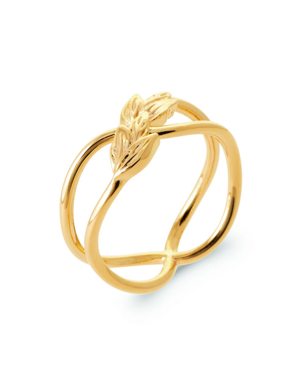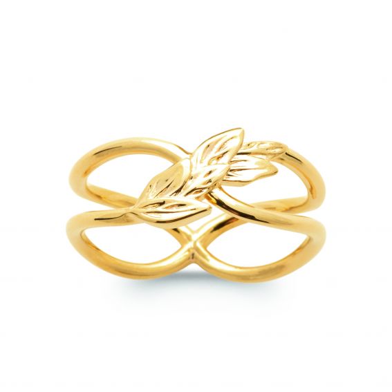 met elkaar verweven ring 4 bladeren in 18k gouden plaat