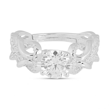 Deze 925 zilveren ring is een gedraaide ring bezet met zirkoniumoxide steentjes.