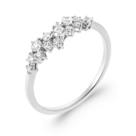 Deze elegante ring met steen voor dames, gemaakt van 925 sterling zilver, belichaamt delicatesse en verfijning. Het verfijnde ontwerp benadrukt een weelderige verzameling zirkoniumoxidestenen, organisch gerangschikt om een sprankelende tak of een sprankelende kroon op te roepen. De kristalheldere glans van de stenen geeft de ring een verfijnde uitstraling, perfect om alledaagse outfits of een speciale gelegenheid te verfraaien.