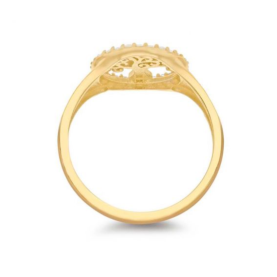Deze gouden levensboomring staat voor elegantie en spiritualiteit. Een betekenisvol sieraad om cadeau te doen of uzelf te trakteren om het leven, uw familie en uw roots te vieren.