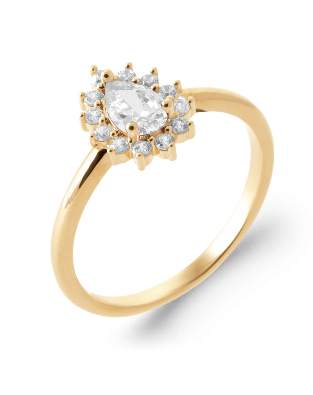 De harmonieuze schikking van de stenen creëert een sieraad dat chic, vrouwelijk en tijdloos is, ideaal voor een bruiloft, ceremonie, receptie of formele avond . De 18-karaats vergulding accentueert de delicate zetting en zorgt voor een warme gloed, perfect geschikt voor formele gelegenheden.