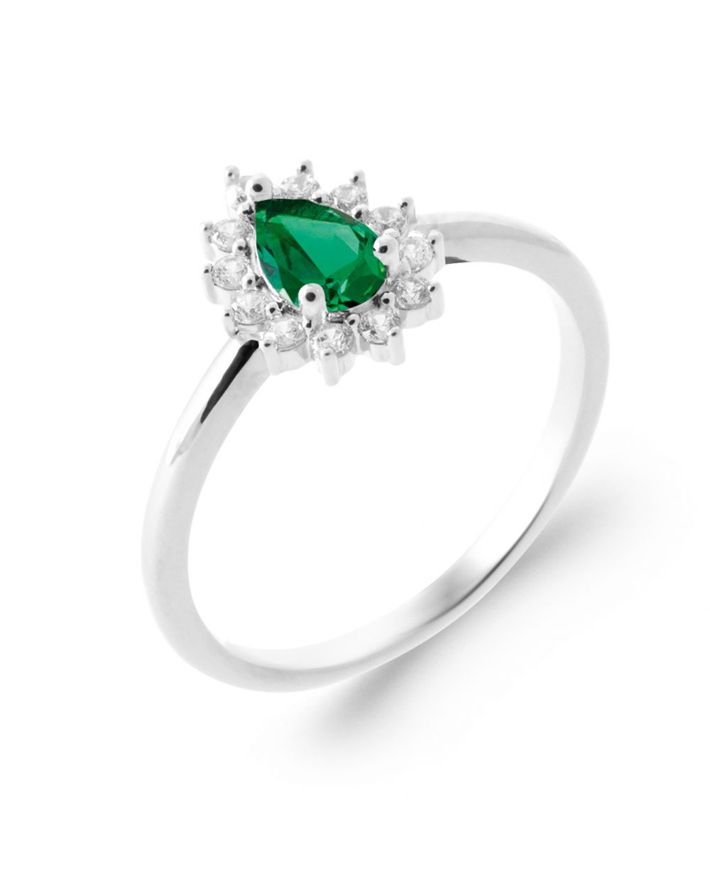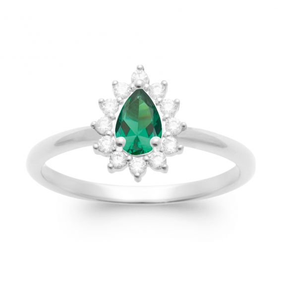 Geïnspireerd door het iconische Diana- design, betovert deze groene Diana-ring van gerhodineerd 925 sterling zilver met zijn tijdloze elegantie en uitstekende prijs-kwaliteitverhouding. De centrale, peervormige smaragdgroene pavé-steen wordt subtiel omringd door sprankelende witte stenen , wat een stralend en verfijnd effect creëert.
