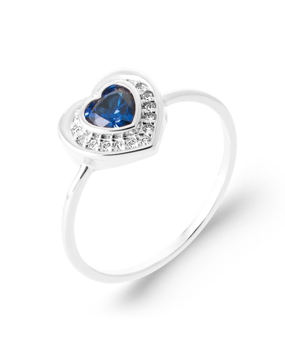 Voeg een vleugje elegantie en verfijning toe aan uw stijl met deze gerhodineerde 925 zilveren hartvormige ring , verfraaid met een intens blauwe steen omringd door sprankelende zirkoniumoxide steentjes .