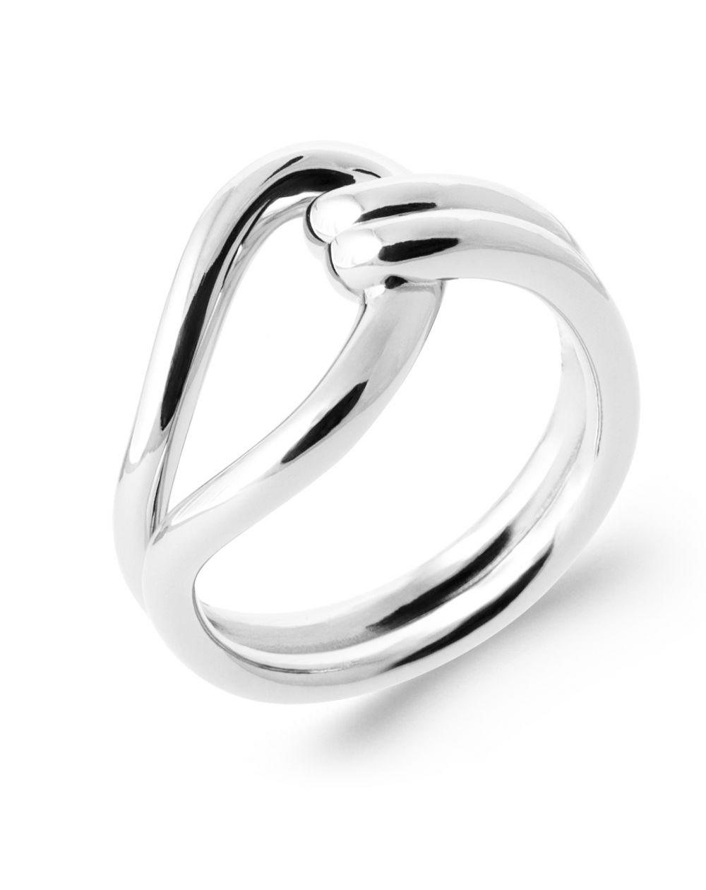 Het kruispatroon, met zijn zachte, perfect gepolijste rondingen, roept een natuurlijke en harmonieuze beweging op. Deze ring is vrij van stenen en vertrouwt op de puurheid van het metaal en de kwaliteit van de afwerking om een minimalistische, chique en tijdloze uitstraling te bieden.