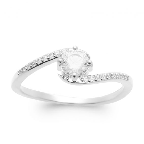 De delicate, spiraalvormige zetting omarmt een stralende centrale steen, terwijl fijne kubische zirkonia de rondingen van het sieraad accentueert. Dit samenspel van vloeiende lijnen roept de vereniging van twee wezens op, in een stijl die zowel romantisch als eigentijds is.