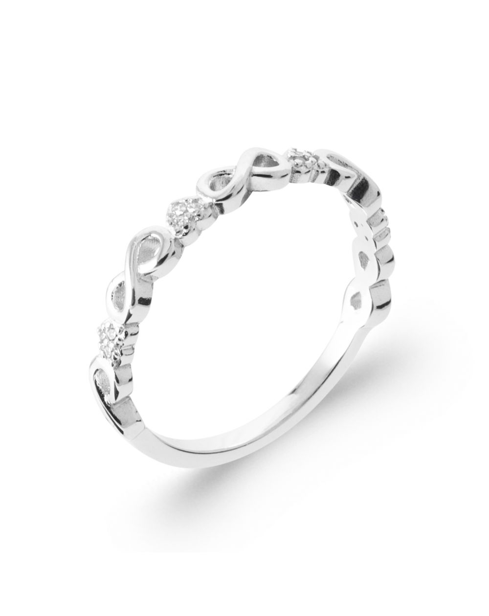 De Élora-ring van 925 sterling zilver , een symbool van eeuwigheid en oneindige verbondenheid, betovert met zijn verfijnde en betekenisvolle ontwerp. De ring is opgebouwd uit fijn bewerkte oneindigheidssymbolen, versterkt door subtiele accenten van zirkonia , en vangt op elegante wijze het licht.