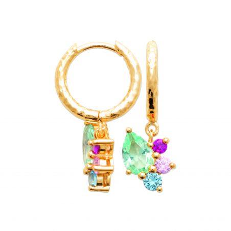 Deze 18-karaats vergulde oorbellen zijn oorringen met juwelen en gekleurde stenen.