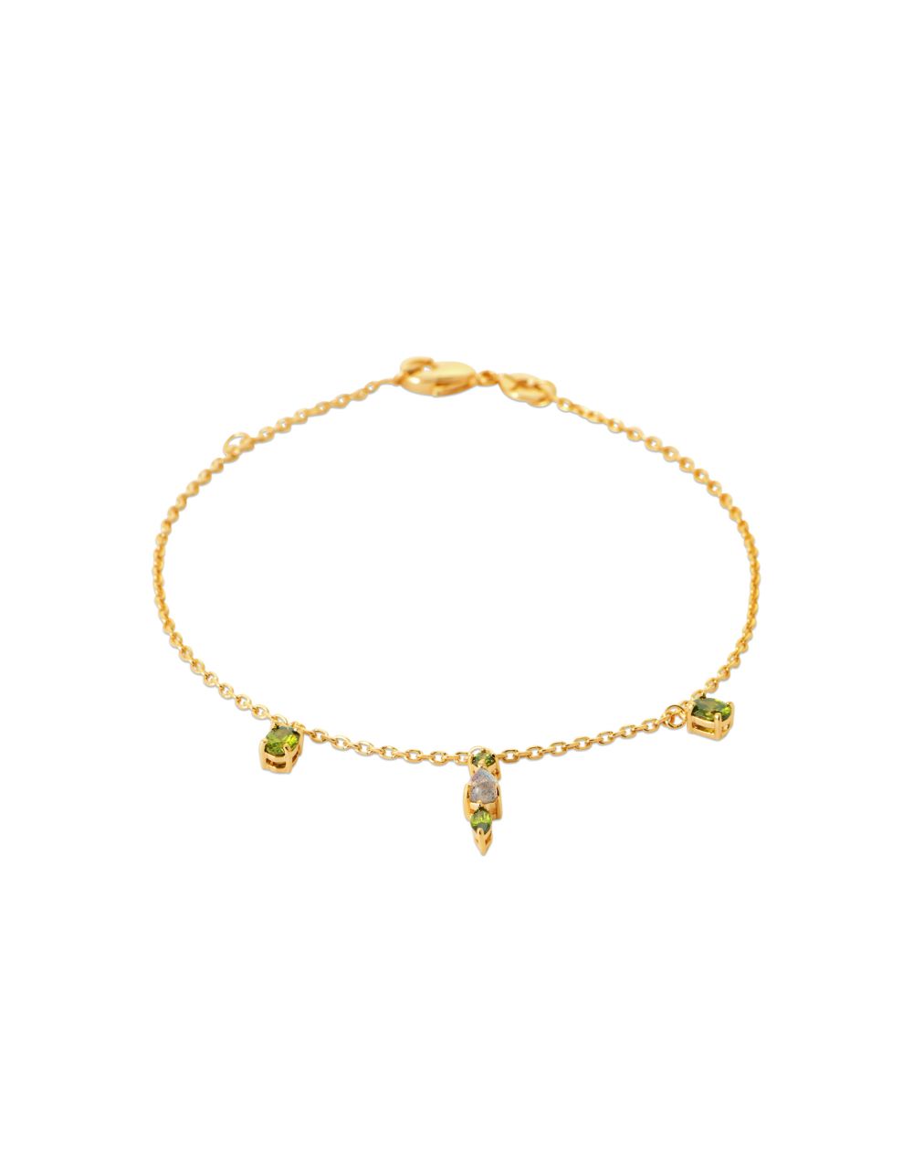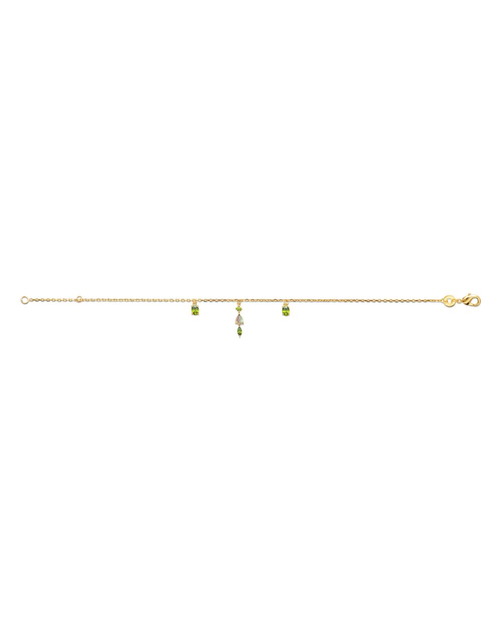 Fijne vergulde armband met peridot bedeltjes.