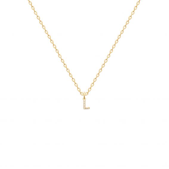 Deze hanger in de vorm van de letter "L" is subtiel verguld en bezet met glanzende zirkoniums. De gouden afwerking en fonkelende stenen voegen een vleugje verfijning en elegantie toe, perfect om je ketting te personaliseren. Ideaal voor dagelijks gebruik of voor speciale gelegenheden, deze hanger is ook een ideaal geschenk om uw genegenheid op een unieke en verfijnde manier te uiten.