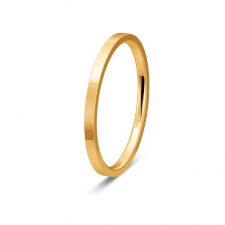 This 18 carat yellow gold alliance is a flat surface ribbon alliance. This alliance measures 1.5mm wide and perhaps personalized with an engraving (date and first names).