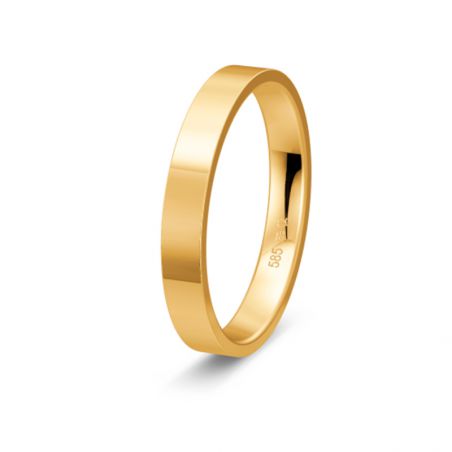 This 18 carat yellow gold alliance is a flat surface ribbon alliance. This alliance measures 3mm wide and perhaps personalized with an engraving (date and first names).