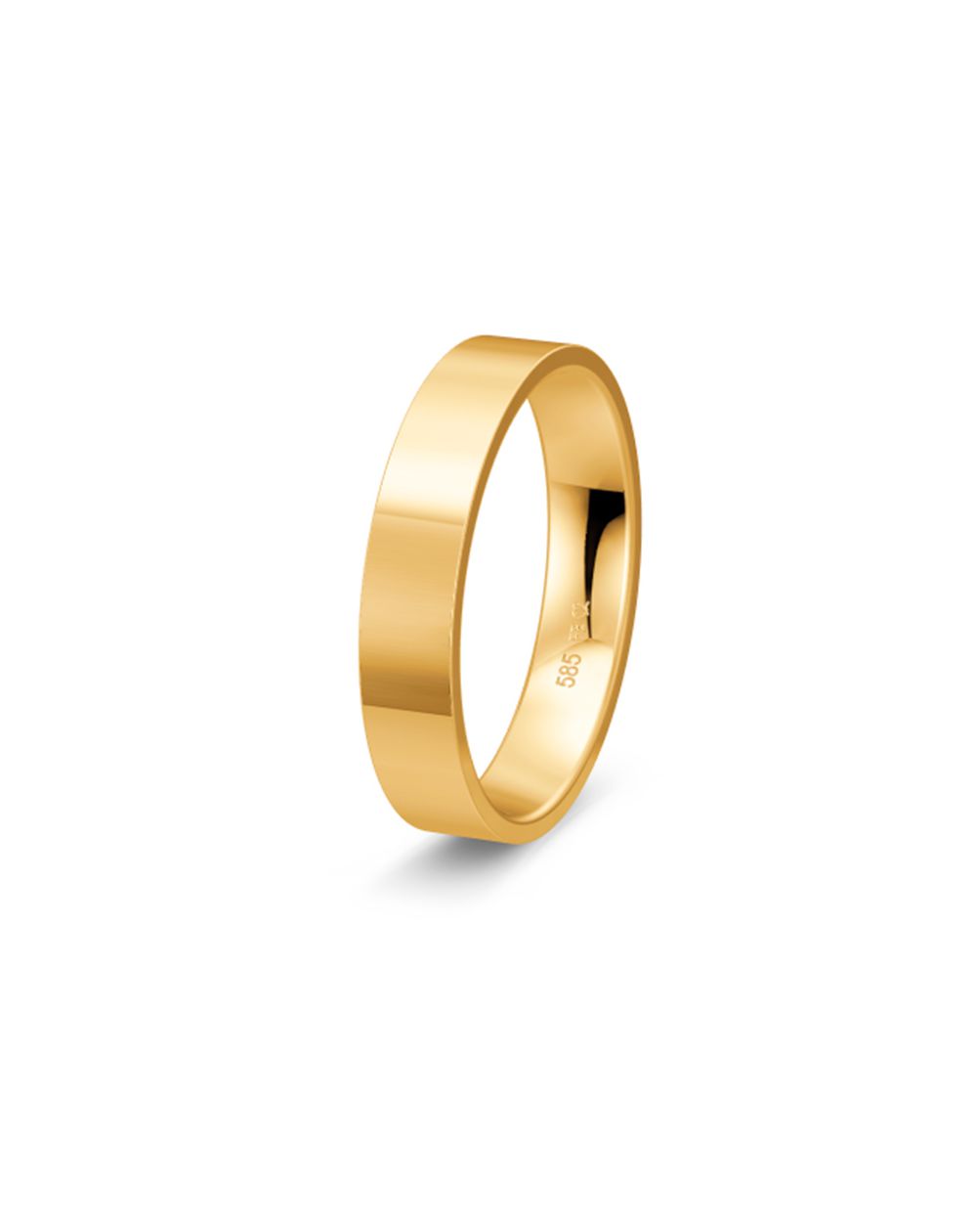 This 18 carat yellow gold alliance is a flat surface ribbon alliance. This alliance measures 4mm wide and perhaps personalized with an engraving (date and first names).