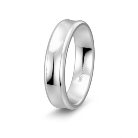 This 18 carat white gold alliance is an alliance whose upper part is concave. The inner part is slightly rounded and measures 5mm wide. This alliance can be personalized with an engraving (date and first names).