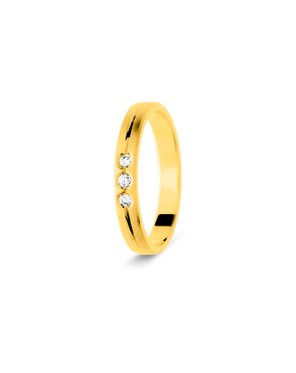 This 18 carat yellow gold alliance is an alliance set with 3 diamonds of 0.02 carats. This alliance can be personalized with an engraving (date and first names).