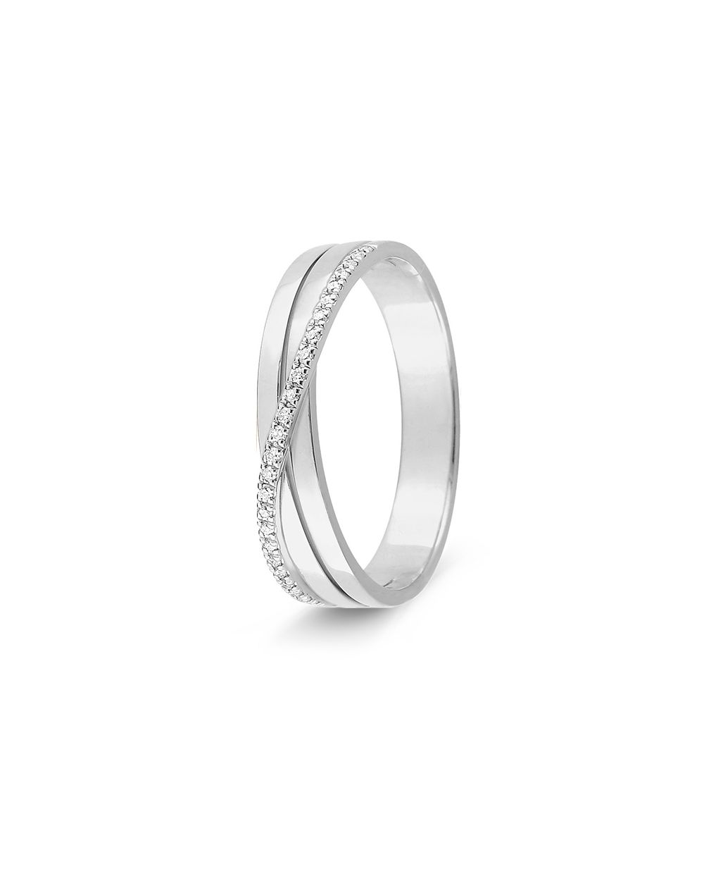 Fancy gekruiste trouwring 25 diamanten 18k witgoud