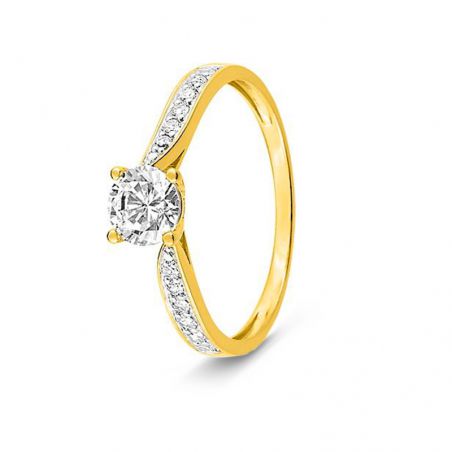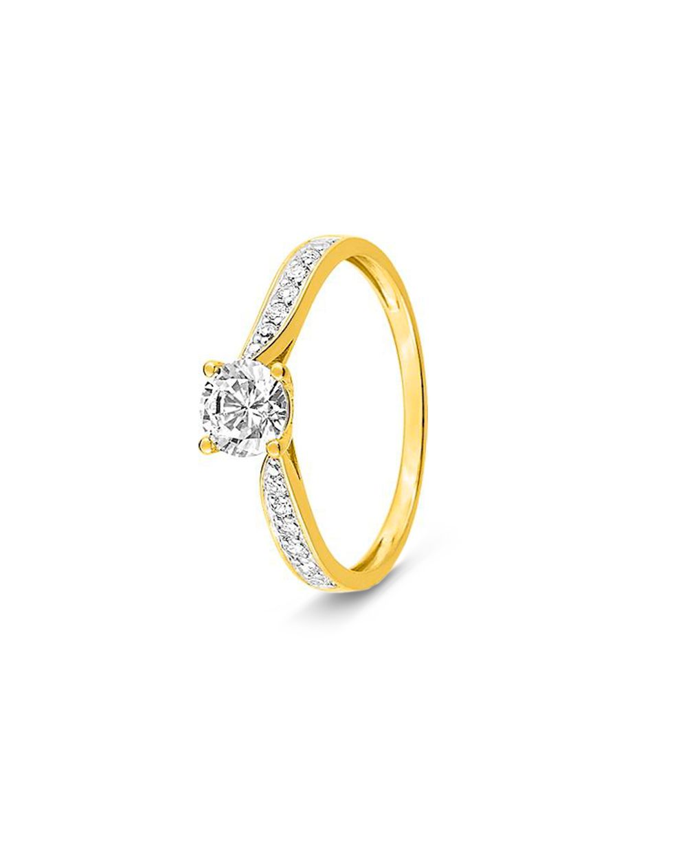 Deze 9 karaat geelgouden solitaire is een ring met een solitaire.