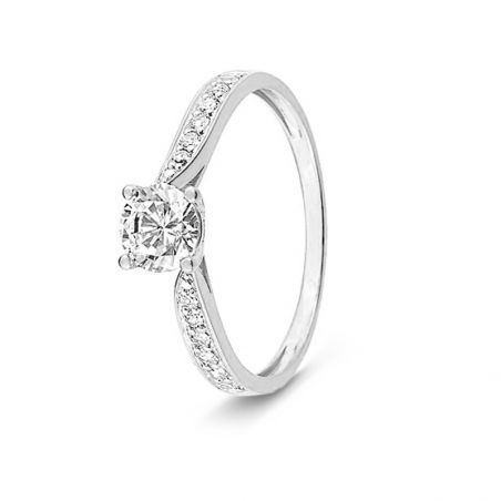 Deze solitaire ring in 9 karaat witgoud is een solitaire bezet met zirkoniumstenen, ideaal voor een verloving of om jezelf te verwennen!