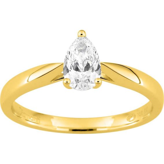 Deze vrouwelijke en subtiel grafische solitaire ring van 18-karaat geelgoud (Au 750) is bezet met een peervormige, in het laboratorium gekweekte diamant van minimaal 0,50 karaat . De slanke vorm, een subtiele mix van druppel- en ovale vorm, zorgt voor een elegant silhouet dat de hand op natuurlijke wijze verlengt.